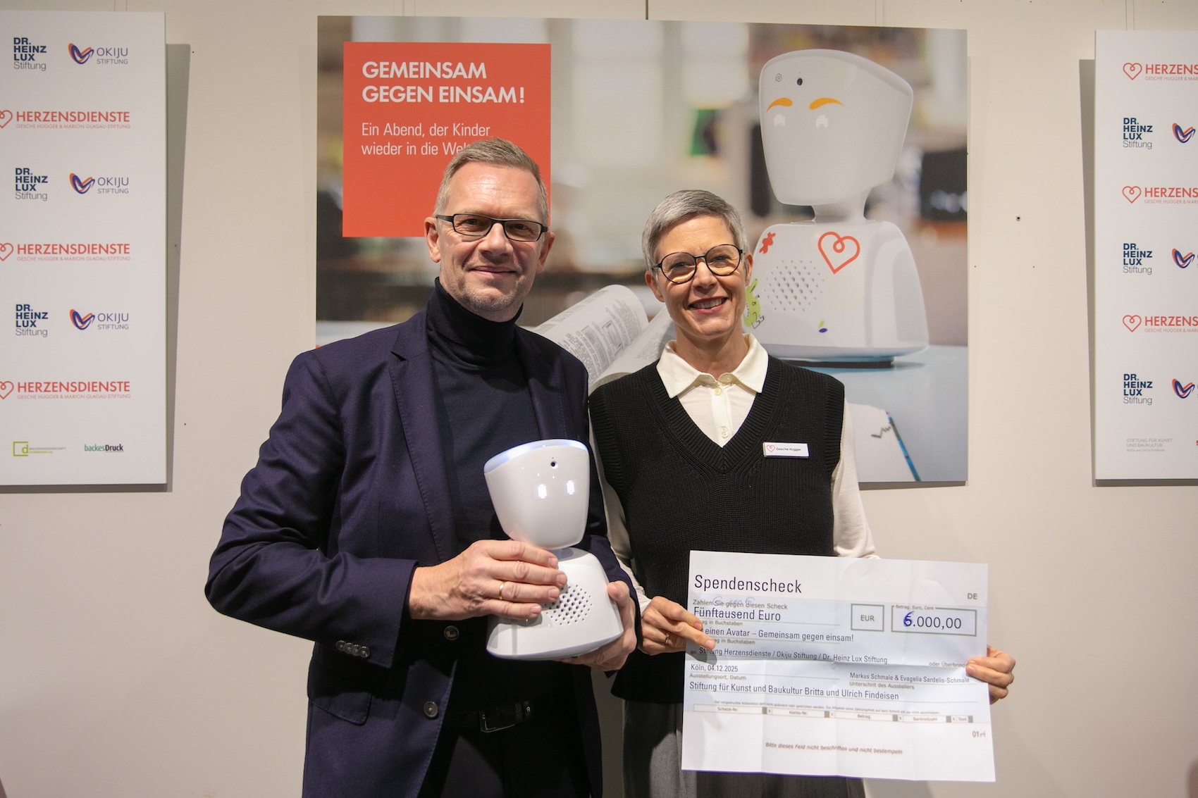 Im Verlauf des Abends wurde deutlich, wie groß die Bereitschaft ist, digitale Teilhabe für erkrankte Kinder und Jugendliche zu stärken. Die veranstaltenden Stiftungen verdoppeln weiterhin alle Spenden, die bis zum 12.12.2025 eingehen. Bisher konnten im Rahmen der aktuellen Spendenaktion bereits rund 36.000 Euro gesammelt werden, ein deutliches Zeichen gemeinsam gelebter Verantwortung und nachhaltiger Unterstützung. Ein besonderer Moment war die Übergabe eines Spendenschecks in Höhe von 6.000 Euro durch Dipl.-Ing. Markus Schmale im Namen der Stiftung Findeisen an die OKIJU Stiftung. Ursprünglich auf 5000 Euro ausgelegt, wurde der Betrag erhöht, als klar wurde, dass somit ein vollständiges AV1 Paket finanziert werden kann. Spenderinnen und Spender erhielten ab einen Betrag von 500 Euro zudem einen Weihnachtsbaum, ein ehrlich gemeintes Dankeschön und ein Zeichen für das Miteinander, das diesen Abend geprägt hat.